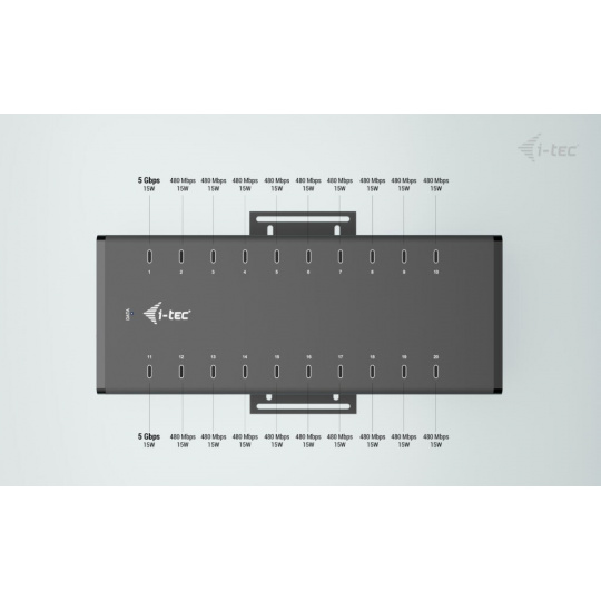 I-tec USB-C/USB-A Metal Charging+Data HUB, 15W per port, 20x USB-C, 360W