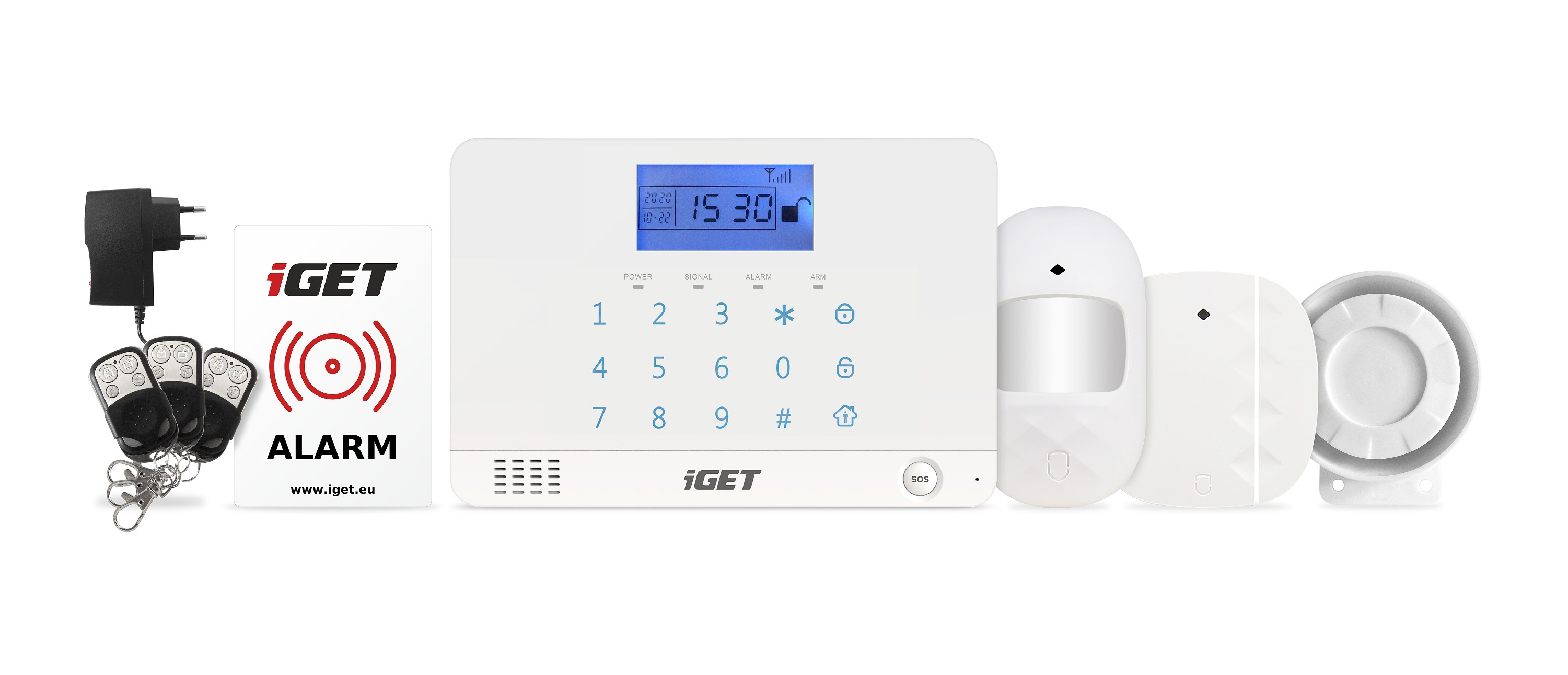 Bezdrátové detektory mají dosah až 80m. Stačí pouze vložit baterie a umístit detektor v prostoru. Aktivace a deaktivace alarmu je rovněž snadná a rychlá. Buď je možné klasické vložení kódu na klávesnici centrální jednotky, použití bezdrátové klíčenky, nebo pomocí aplikace iGET ALARM. Kovové odolné klíčenky slouží jako dálkové ovladače alarmu. Je možné aktivovat/deaktivovat alarm, aktivovat SOS poplach, a aktivovat Režim Doma jen pro některé zóny. Veškerá komunikace bezdrátových detektorů a klíčenek je kódována, komunikace je tak zabezpečena proti případným útokům.
