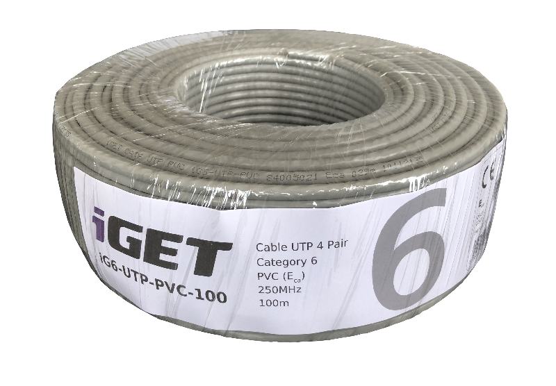 iGET Síťový kabel CAT6 UTP PVC Eca 100m/role