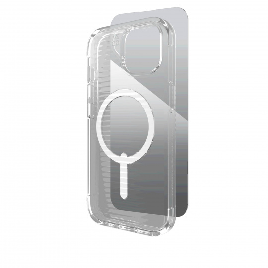 Set ochranného krytu kompatibilního s MagSafe a ochranného skla. Vyroben z 95 % recyklovaných materiálů. Pro maximální odolnost byl zesílen grafenem, jedním z nejpevnějších známých materiálů na Zemi. Zařízení ochrání při pádech z výšky až 3 metrů.