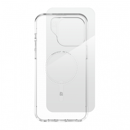 Set ochranného krytu kompatibilního s MagSafe a ochranného skla. Vyroben z 95 % recyklovaných materiálů. Pro maximální odolnost byl zesílen grafenem, jedním z nejpevnějších známých materiálů na Zemi. Zařízení ochrání při pádech z výšky až 3 metrů.