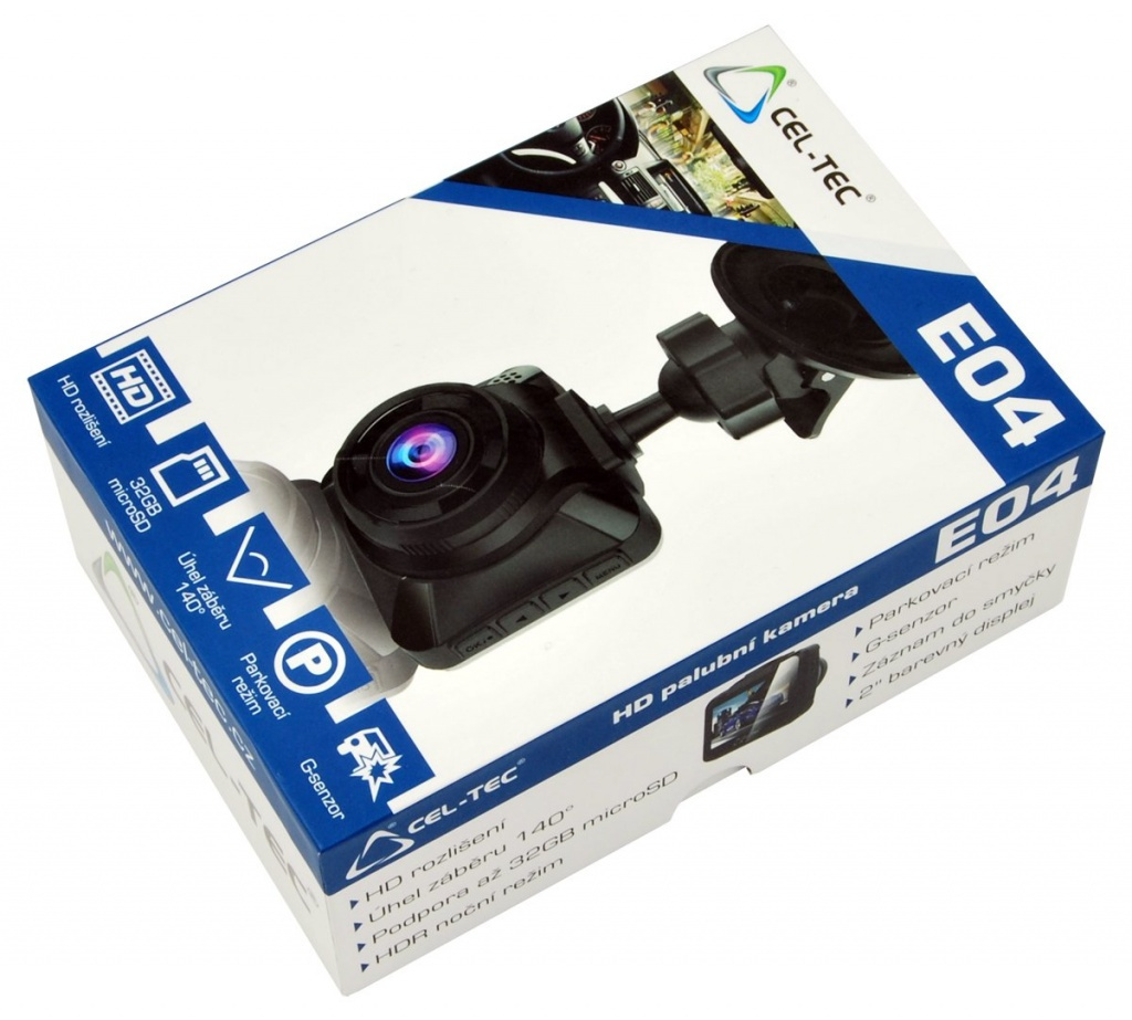 Kamera do auta CEL-TEC E04 je základní řada palubní kamery, avšak plně dostačující pro vaši bezpečnost a případný důkazní materiál. Kamera nahrává v reálném HD rozlišení (interpolovaně FULL HD) s širokým úhlem záběru 140°, navíc je vybavena HDR funkcí pro noční záznamy a parkovacím režimem.