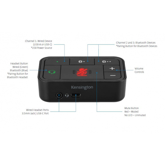 Kensington’s Universal 3-in-1 Pro Audio Headset Switch enables