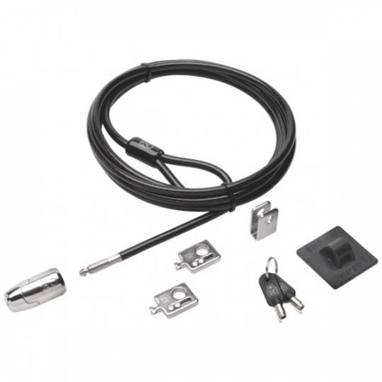 8-foot carbon steel cable is cut-resistant and anchors to desk, table or any fixed structure