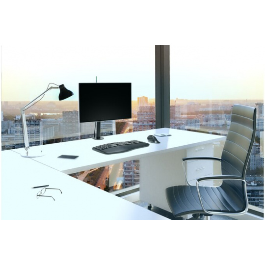 Dodaná C-svorka a průchodkový spojovací prvek jsou vyrobeny z odolné oceli a hliníku, jejich uchycení vyžaduje méně prostoru na stole a snadno se instalují, aniž by jakkoliv poškodily stůl nebo na něm zanechaly nějaké stopy.