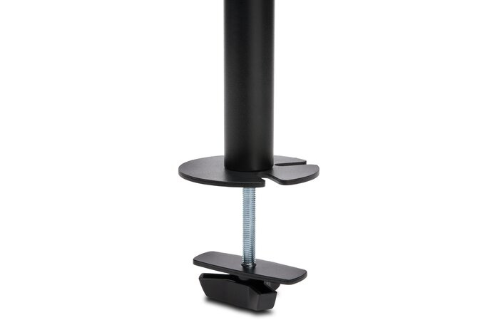Dodaná C-svorka a průchodkový spojovací prvek jsou vyrobeny z odolné oceli a hliníku, jejich uchycení vyžaduje méně prostoru na stole a snadno se instalují, aniž by jakkoliv poškodily stůl nebo na něm zanechaly nějaké stopy.