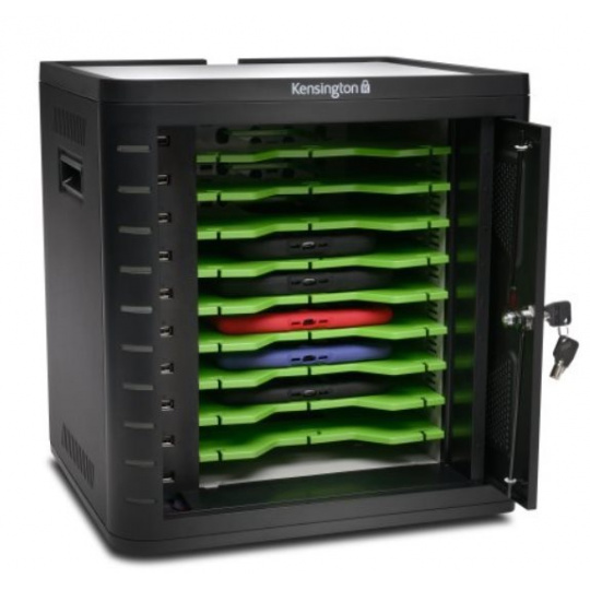 V době, kdy se stále více tabletů používá ve školách, firmách a maloobchodech, došlo ke zvýšení poptávky po praktickém a bezpečném úložném prostoru. Společnost Kensington může tuto poptávku uspokojit pomocí nové univerzální nabíjecí a synchronizační skříňky Kensington pro tablety. Skříňka poskytuje prostor až pro 10 tabletů, včetně zařízení iPad, Galaxy Tab, Kindle a dalších. Je ideálním řešením pro nabíjení tabletů poté, co všichni odešli po škole nebo práci domů, aby tablety mohly být nabité a připravené na následující den. Nabízí také přizpůsobitelné zásuvky, takže každá pozice pojme i tablety v odolném ochranném pouzdře. Na sebe lze uložit až tři skříňky, čím v jedné učebně získáte kapacitu až na 30 tabletů. Přední zabezpečená dvířka se při otevření zasunou a nabízí ochranu s přístupem pomocí přizpůsobeného klíče. Dodaná montážní destička a kabelový zámek bezpečně zajistí skříňku na místě.
