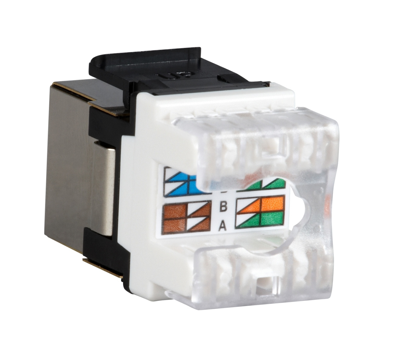 Zařezávací keystony produktové řady Solarix – kategorie 5E jsou dodávány jak v nestíněném, tak i ve stíněném provedení. Standardní barva u nestíněného keystonu je černá; v případě stíněného keystonu je tělo modulu opatřeno stříbrnou kovovou částí. Oba tyto typy keystonů převyšují požadavky definované ve standardech ANSI/TIA 568, ISO/IEC 11801 a EN 50173 pro kategorii 5E a třídu vedení Class D, včetně všech nejnovějších dodatků. Zařezávací keystony Solarix nabízí vysokou spolehlivost, maximální funkčnost a jednoduchou instalaci. Kontakty duální svorkovnice typu 110/Krone jsou označeny barevným schématem podle způsobu zapojení, a to buď podle standardu T568A, nebo T568B. Do svorkovnice lze zařezat kabely typu drát s vodiči o velikosti AWG 26 – 22. Pro pohodlné a bezpečné zařezávání keystonů je k dispozici montážní držák SXKJ-MD-BU určený k zafixování keystonu na pracovní ploše (tj. při zařezávání není nutné držet keystone přímo v ruce). Díky svým kompaktním rozměrům jsou tyto zařezávací keystony kompatibilní s modulárními zásuvkami většiny výrobců (např. ABB, Schneider, Legrand, Moeller, Hager, Obzor atd.). Tuto kompatibilitu si můžete ověřit v tabulce kompatibility, která se nachází v záložce "Odkazy".