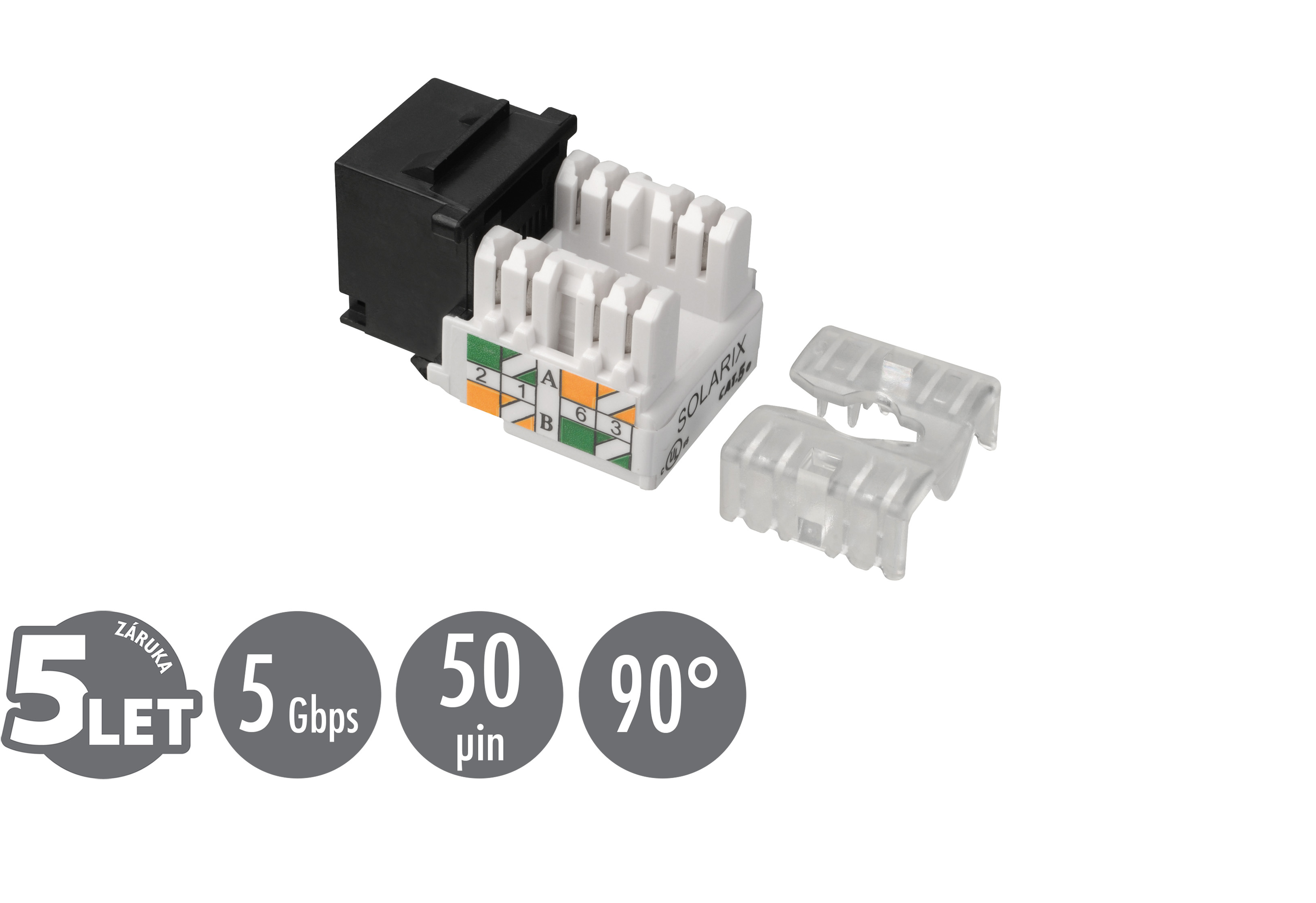 Odkaz na web výrobceZařezávací keystone Solarix CAT5E UTP svorkovnice 90° SXKJ-5E-UTP-BK-90