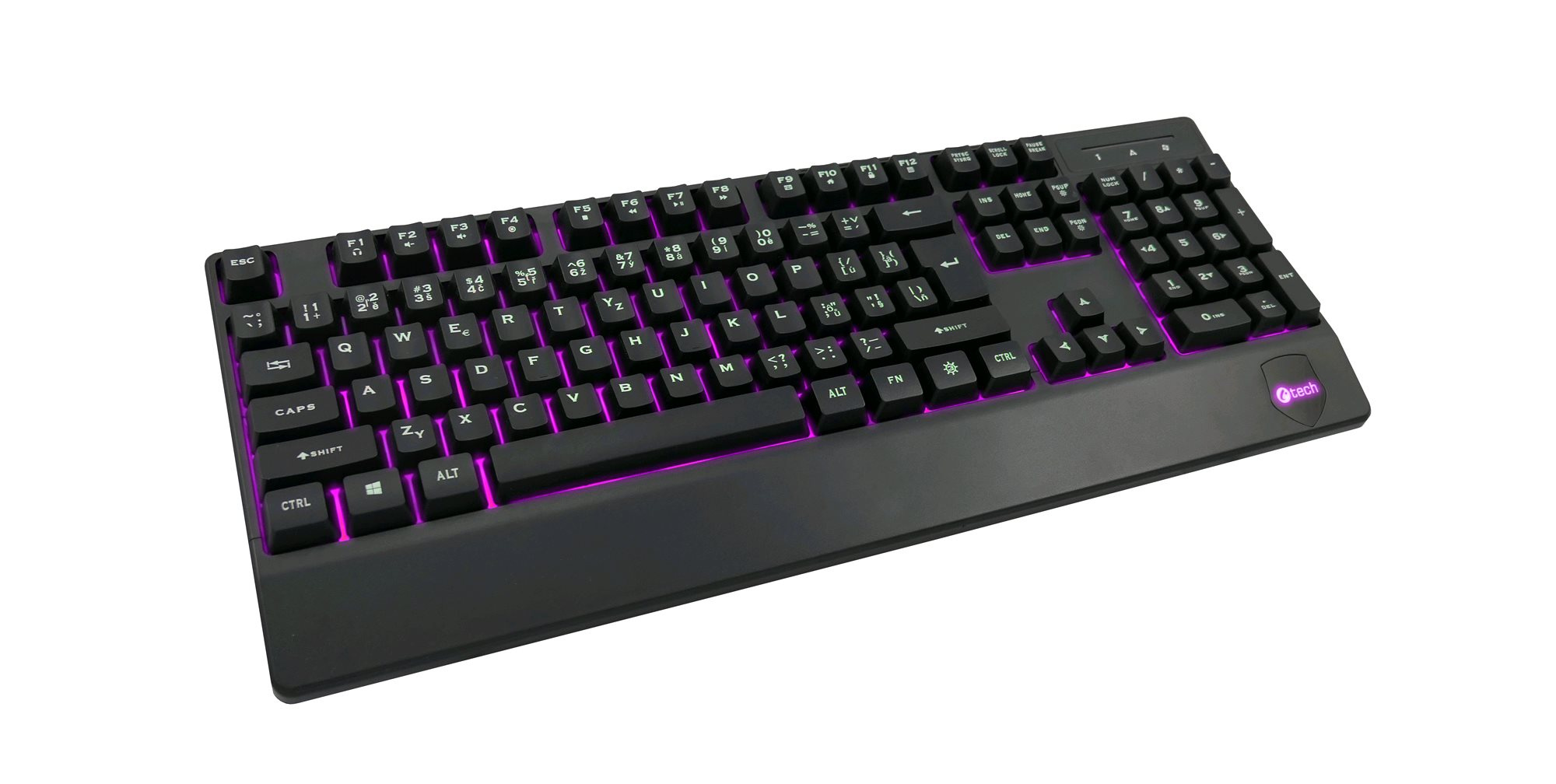 KB-104BK je novou elegantní klávesnicí značky C-TECH, která nabízí podsvícené klávesy s možností volby 3 barev podsvícení. Elegantní podsvícení je možno přepínat nebo vypnout pomocí speciální klávesy. Technologie speciálně navržených membrán garantuje klávesnice velmi vysokou životnost a rychlou odezvu při hraní her. Samozřejmostí je česko-slovenský layout.