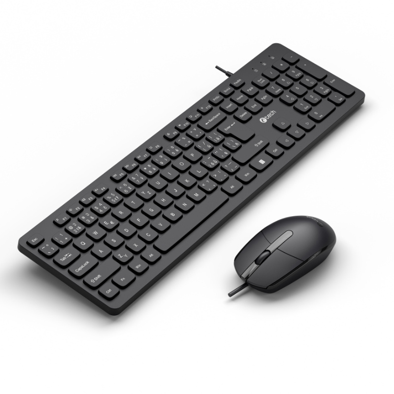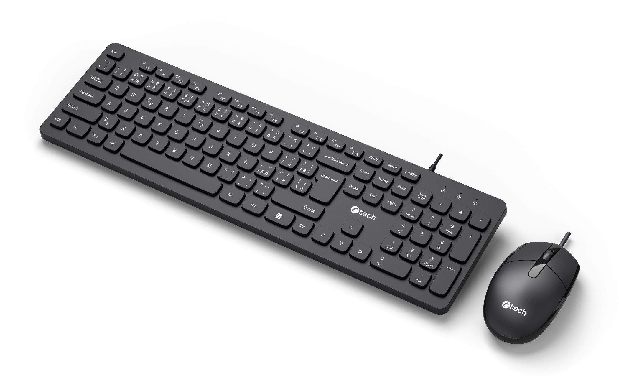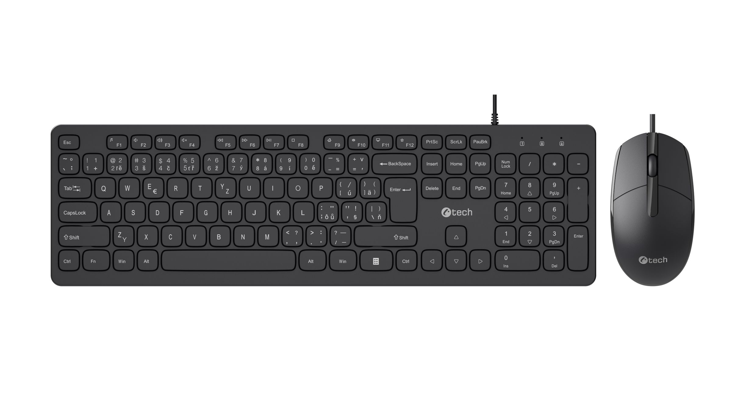 Klávesnice C-TECH KBM-105, drátový combo set s myší, USB, CZ/SK