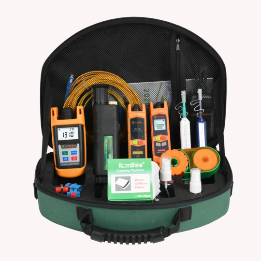Sada nástrojů pro výstavbu optických sítí KLT-15D je profesionální sestava nářadí pro testování ztrát optických vláken a údržbu telekomunikačních systémů.