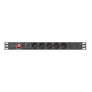 LANBERG 19" 1U 10A 2M 5X SCHUKO ZÁSUVKY ČERNÁ C14
