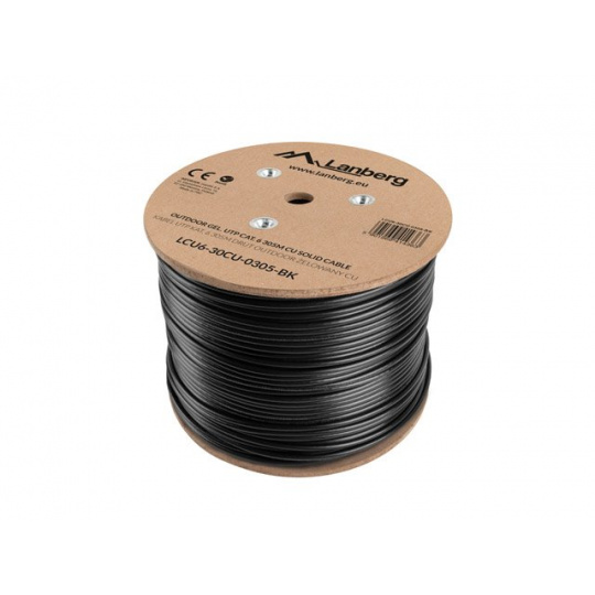 LANBERG LAN KABEL CAT.6 UTP 305M PEVNÝ VENKOVNÍ S GELOVOU VÝPLNÍ CU ČERNÝ FLUKE PASS