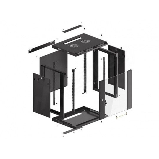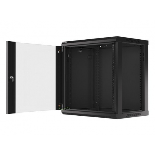 LANBERG Nástěnná jednodílná skříň 19”, 12U/600x450, (v rozloženém stavu), V2, černá (RAL9004)