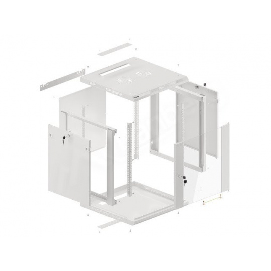 LANBERG Nástěnná jednodílná skříň 19", 12U/600x600 (v rozloženém stavu) šedá (RAL7035) V2