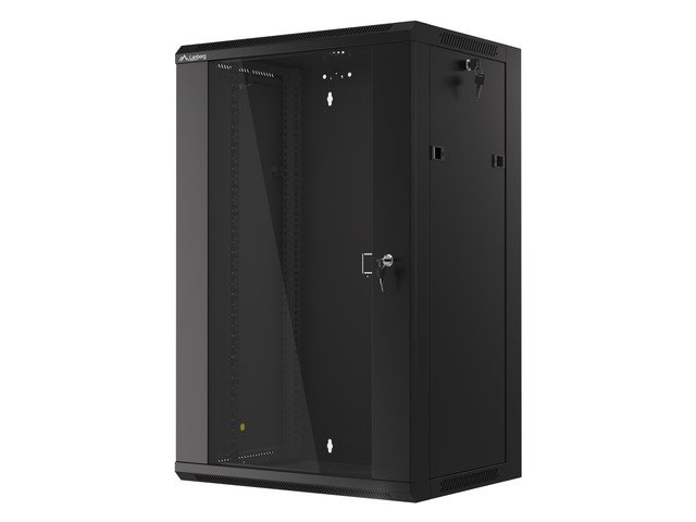 LANBERG Nástěnná jednodílná skříň 19", 18U 570x450 snadná a rychlá montáž (v rozloženém stavu) černá (RAL9004)