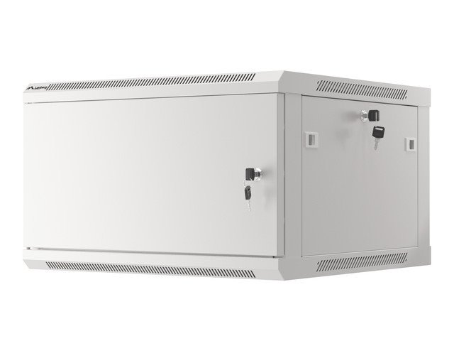 Nástěnná jednodílná skříň Lanberg WF01-6606-00S je řešení určené pro rozšíření sítí, instalaci kabeláže a zařízení o velikosti 19” s max. 60 kg. nosnost. Lze jej použít v sítích, serverovnách, malých a středních firmách. Může také pracovat v systémech nízkého napětí, jako jsou sítě kabelové televize, poplašné systémy, systémy požární ochrany a systémy kontroly přístupu, CCTV a IP dohled. Vhodný design umožňuje jednoduchou, svépomocnou montáž. Skříň se vyznačuje stupněm krytí IP20, otevírací přední dvířka s možností otočení o 180° se zámkem, odnímatelné bočnice (zámky součástí dodávky). Skříň má na horním a spodním krytu panel pro vstup kabelů. Tento výrobek je vyroben z vysoce kvalitní oceli válcované za studena. Konstrukce skříně pro vlastní montáž je v plochém obalu, což usnadňuje přepravu. Balení navíc obsahuje další příslušenství pro držáky na kolejnice, klecové matice M6 a prázdné vstupní panely.
