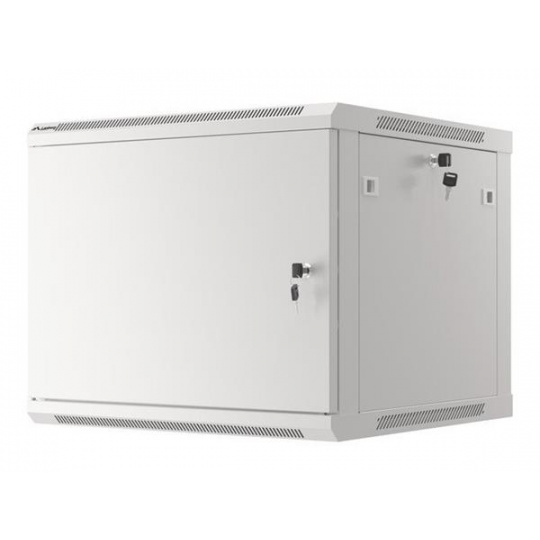 LANBERG Nástěnná jednodílná skříň 19", 9U/600x600 FOR SELF-ASSEMBLY plechové dveře šedá (RAL7035) (v rozloženém stavu)