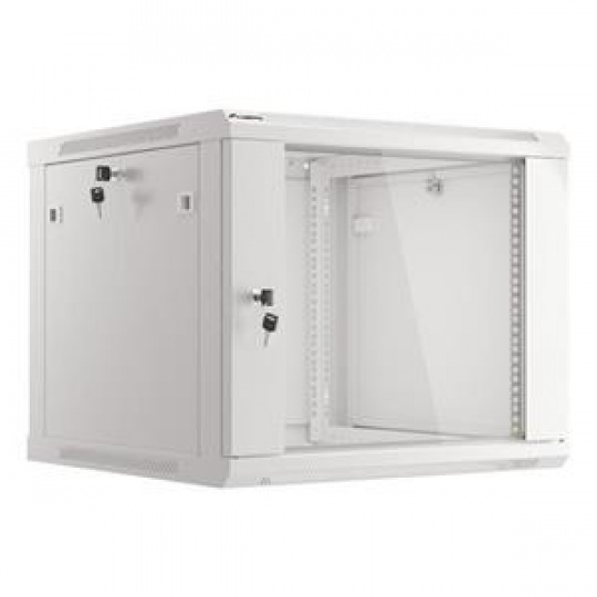 Nástěnná jednodílná skříň Lanberg WF01-6609-10S je řešení určené pro rozšíření sítí, instalaci kabeláže a zařízení o velikosti 19” s max. 60 kg. nosnost. Lze jej použít v sítích, serverovnách, malých a středních firmách. Může také pracovat v systémech nízkého napětí, jako jsou sítě kabelové televize, poplašné systémy, systémy požární ochrany a systémy kontroly přístupu, CCTV a IP dohled. Vhodný design umožňuje jednoduchou, svépomocnou montáž. Skříň se vyznačuje stupněm krytí IP20, otevírací přední dvířka s možností otočení o 180° se zámkem, odnímatelné bočnice (zámky součástí dodávky). Skříň má na horním a spodním krytu panel pro vstup kabelů. Tento výrobek je vyroben z vysoce kvalitní oceli válcované za studena. Konstrukce skříně pro vlastní montáž je v plochém obalu, což usnadňuje přepravu. Balení navíc obsahuje další příslušenství pro držáky na kolejnice, klecové matice M6 a prázdné vstupní panely.