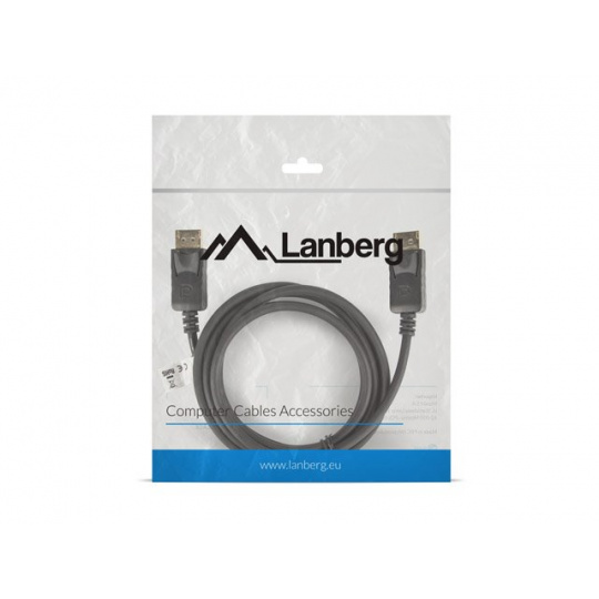 LANBERG připojovací kabel DisplayPort 1.2 M/M, 4K@60Hz, délka 1,8m, černý, se západkou, zlacené konektory