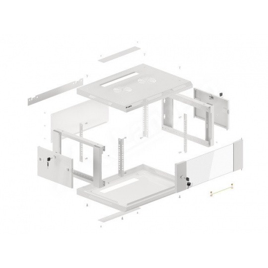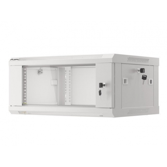 Nástěnná jednodílná skříň Lanberg WF01-6404-10S je řešení určené pro rozšíření sítí, instalaci kabeláže a zařízení o velikosti 19” s max. 60 kg. nosnost. Lze jej použít v sítích, serverovnách, malých a středních firmách. Může také pracovat v systémech nízkého napětí, jako jsou sítě kabelové televize, poplašné systémy, systémy požární ochrany a systémy kontroly přístupu, CCTV a IP dohled. Vhodný design umožňuje jednoduchou, svépomocnou montáž. Skříň se vyznačuje stupněm krytí IP20, otevírací přední dvířka s možností otočení o 180° se zámkem, odnímatelné bočnice (zámky součástí dodávky). Skříň má na horním a spodním krytu panel pro vstup kabelů. Tento výrobek je vyroben z vysoce kvalitní oceli válcované za studena. Konstrukce skříně pro vlastní montáž je v plochém obalu, což usnadňuje přepravu. Balení navíc obsahuje další příslušenství pro držáky na kolejnice, klecové matice M6 a prázdné vstupní panely.