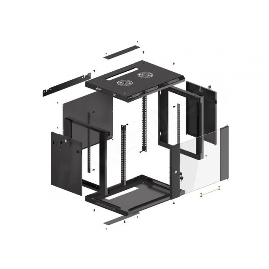 Nástěnná jednodílná skříň Lanberg WF01-6409-10B je řešení určené pro rozšíření sítí, instalaci kabeláže a zařízení o velikosti 19” s max. 60 kg. nosnost. Lze jej použít v sítích, serverovnách, malých a středních firmách. Může také pracovat v systémech nízkého napětí, jako jsou sítě kabelové televize, poplašné systémy, systémy požární ochrany a systémy kontroly přístupu, CCTV a IP dohled. Vhodný design umožňuje jednoduchou, svépomocnou montáž. Skříň se vyznačuje stupněm krytí IP20, otevírací přední dvířka s možností otočení o 180° se zámkem, odnímatelné bočnice (zámky součástí dodávky). Skříň má na horním a spodním krytu panel pro vstup kabelů. Tento výrobek je vyroben z vysoce kvalitní oceli válcované za studena. Konstrukce skříně pro vlastní montáž je v plochém obalu, což usnadňuje přepravu. Balení navíc obsahuje další příslušenství pro držáky na kolejnice, klecové matice M6 a prázdné vstupní panely.