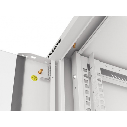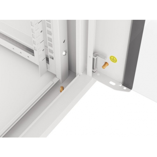 - Přední dveře: odnímatelné, s uzemněním a možností montáže a otáčení až o 180° na obě strany, vybavené 5 mm silným tvrzeným čelním sklem a pevným zámkem,