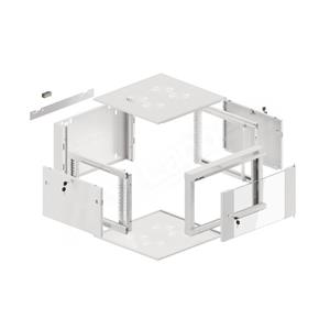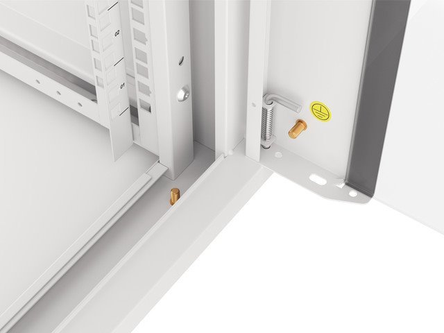- Přední dveře: odnímatelné, s uzemněním a možností montáže a otáčení až o 180° na obě strany, vybavené 5 mm silným tvrzeným čelním sklem a pevným zámkem,