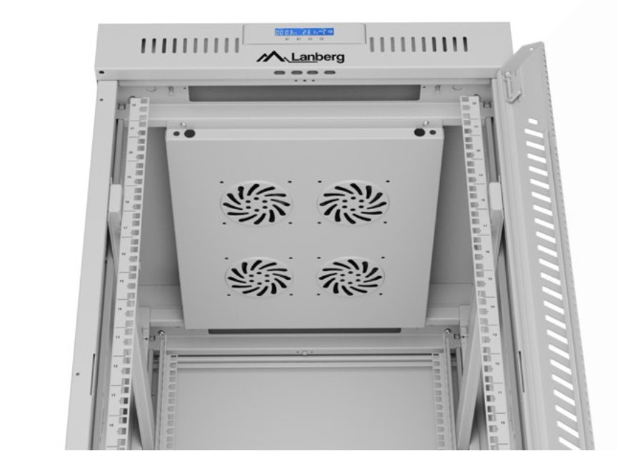 Je vybaven termostatem, časovačem a možností ručního zapínání a vypínání ventilátorů. Kromě toho můžete nezávisle nastavit, při jaké teplotě se mají ventilátory spustit a zahájit chlazení (funkce termostatu). LCD panel je praktickým řešením, které vám umožní optimálně řídit podmínky uvnitř skříně.