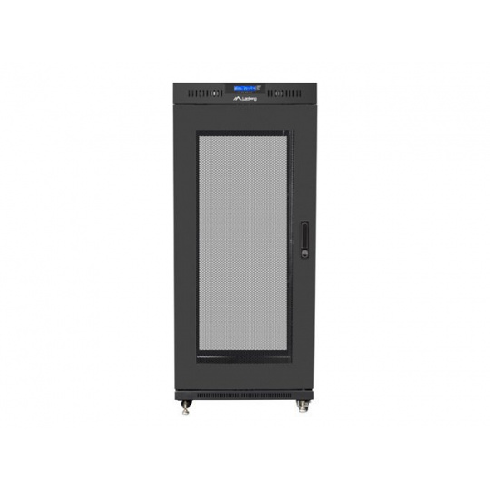 LANBERG Volně stojící skříň 19" 27U/600x600 (v rozloženém stavu) síťované dveře LCD černá (RAL9004)