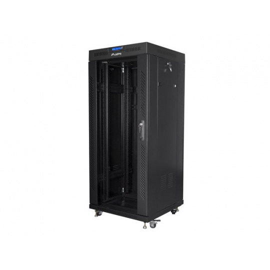 LANBERG Volně stojící skříň 19" 27U/600x600 (v rozloženém stavu) skleněné dveře LCD černá (RAL9004)