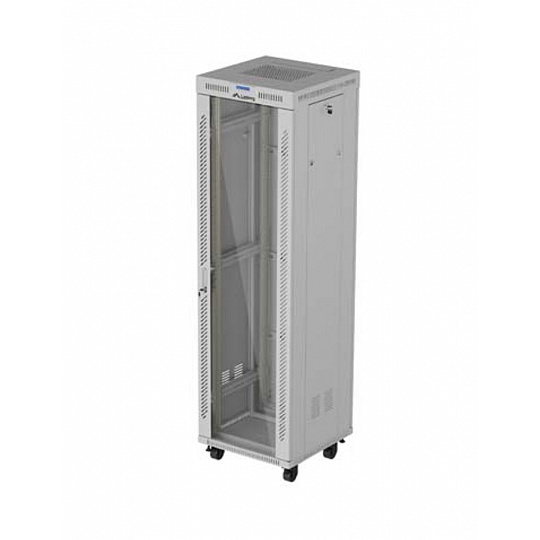 LANBERG Volně stojící skříň 19" 42U/600x600 (v rozloženém stavu) síťované dveře LCD šedá (RAL9004)