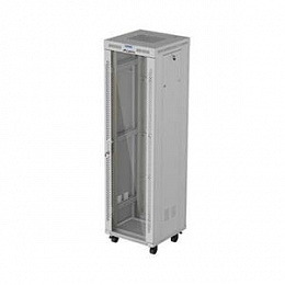 LANBERG Volně stojící skříň 19" 42U/600x600 (v rozloženém stavu) síťované dveře LCD šedá (RAL9004)
