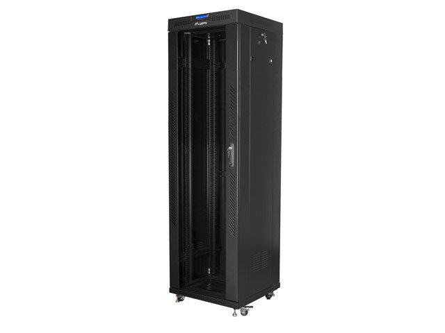 Volně stojící rozvaděč Lanberg FF01-6642-12BL je řešení určené pro rozšíření sítí, instalaci kabeláže a zařízení o velikosti 19” s max. 800 kg. nosnost.