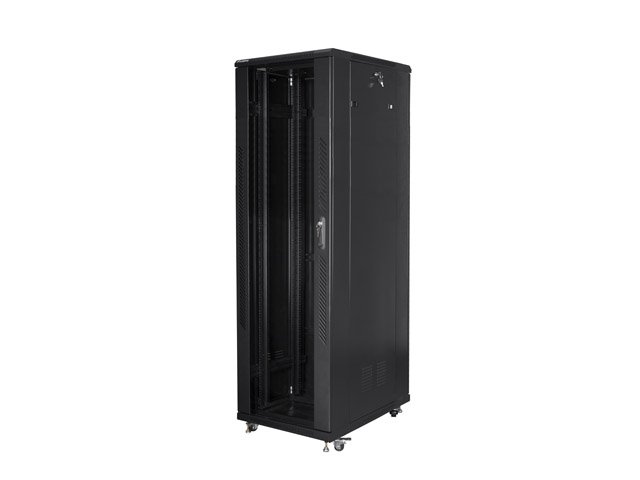 Konstrukce výrobku je vyrobena z vysoce kvalitní oceli válcované za studena, která se vyznačuje vynikajícím designem a vysokou kvalitou řemeslného zpracování. Skříň umožňuje plné nastavení hloubky vertikálních montážních lišt. Navíc je vybaven předními dvířky z tvrzeného skla se zámkem a možností instalace těchto dvířek na pravou nebo levou stranu.