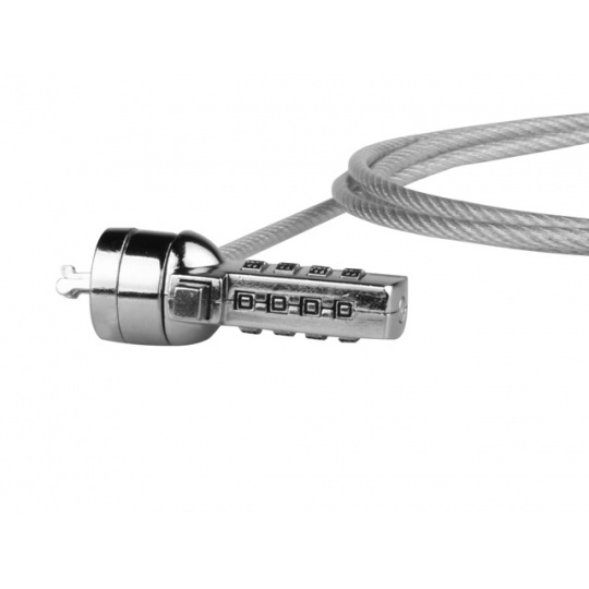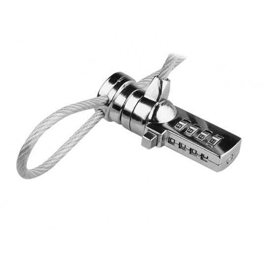 Lankový bezpečnostní zámek na kód pro notebooky vyrobený z tvrzené oceli, pokrytý gumovou vrstvou, vhodný pro montáž v bezpečnostních slotech notebooků a jiných zařízení např. trezorech, který zvyšuje bezpečnost vašeho zařízení a poskytuje ochranu před odcizením. Zámek je vybaven praktickým čtyřčíslím kódem s možností nastavení 10 000 různých kombinací.