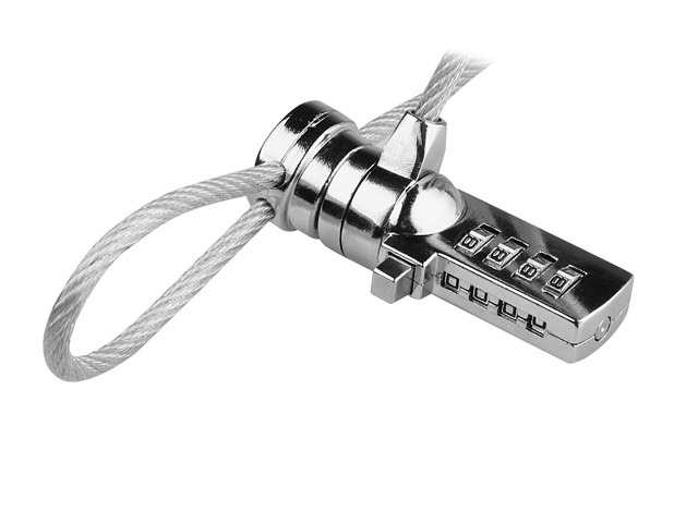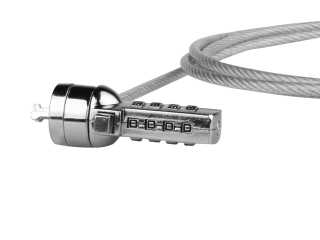 Lankový bezpečnostní zámek na kód pro notebooky vyrobený z tvrzené oceli, pokrytý gumovou vrstvou, vhodný pro montáž v bezpečnostních slotech notebooků a jiných zařízení např. trezorech, který zvyšuje bezpečnost vašeho zařízení a poskytuje ochranu před odcizením. Zámek je vybaven praktickým čtyřčíslím kódem s možností nastavení 10 000 různých kombinací.