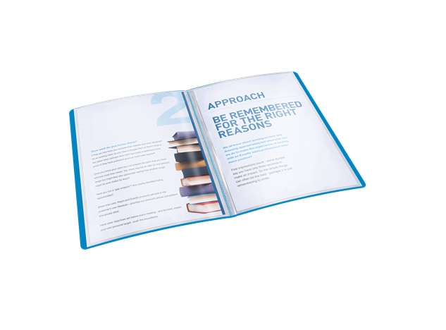 Desky s 20 průhlednými kapsami CopySafe upevněnými ve hřbetu