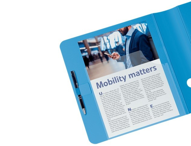 Pro práci s dokumenty na cestách. Mechanismus s otvíráním 180°. A4, 50 mm.