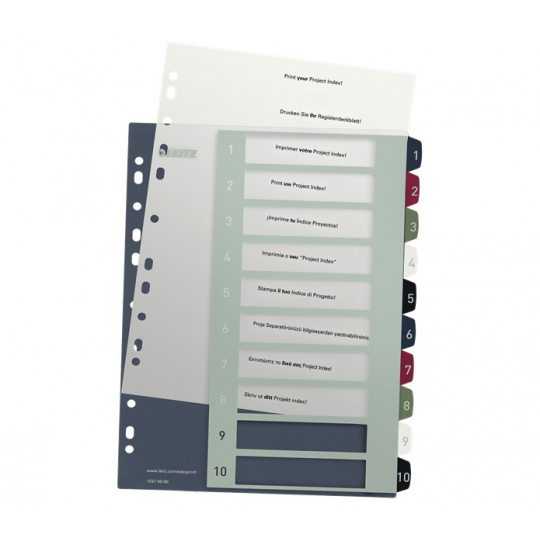 Opakovatelně použitelný a extra odolný plastový rejstřík ve stylových barvách.. Potisknutelný na PC pro upravení dle vlastních potřeb pomocí nástroje na www.leitz.com/easyprint