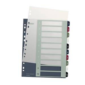 Prémiové rejsříky v sofistikovaných barvách. Dělící listy 1-10. Extra odolné. Průsvitné PP. A4 Maxi.