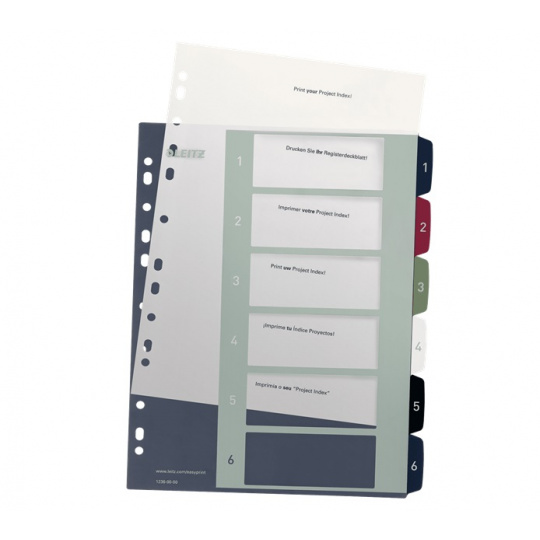 Opakovatelně použitelný a extra odolný plastový rejstřík ve stylových barvách.. Potisknutelný na PC pro upravení dle vlastních potřeb pomocí nástroje na www.leitz.com/easyprint