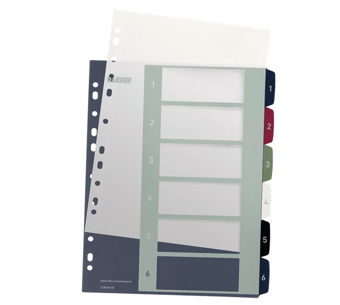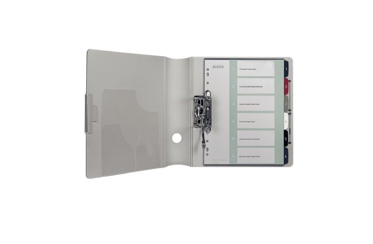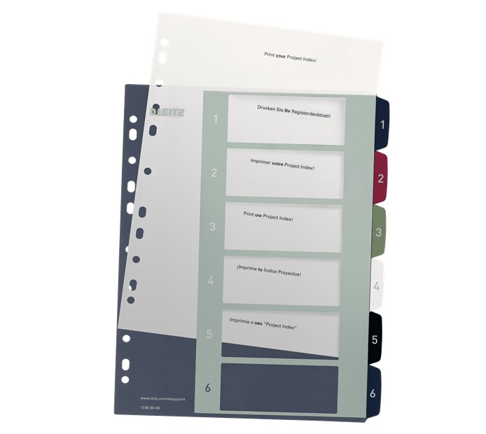 Opakovatelně použitelný a extra odolný plastový rejstřík ve stylových barvách.. Potisknutelný na PC pro upravení dle vlastních potřeb pomocí nástroje na www.leitz.com/easyprint