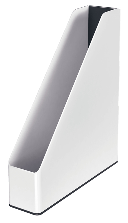 Výrazný moderní stojan na časopisy v prémiové kvalitě značky Leitz, v módním dvoubarevném provedení a se stylovým lesklým povrchem, který se hodí do každé kanceláře nebo domácnosti.