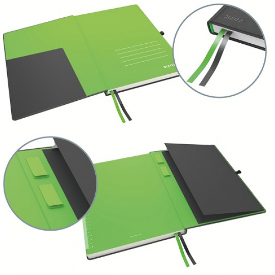 Prémiový zápisník v proslulé kvalitě značky Leitz. Moderní design pro každodenní pořizování poznámek. Atraktivní kožený vzhled (syntetická kůže), je příjemný na dotek. Inovativní prvky zajistí optimální organizaci Vašich poznámek. Dokonale doplňuje ostatní výrobky z řady Leitz Complete.