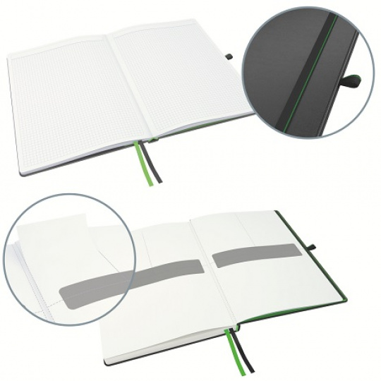 Prémiový zápisník v proslulé kvalitě značky Leitz. Moderní design pro každodenní pořizování poznámek. Atraktivní kožený vzhled (syntetická kůže), je příjemný na dotek. Inovativní prvky zajistí optimální organizaci Vašich poznámek. Dokonale doplňuje ostatní výrobky z řady Leitz Complete.