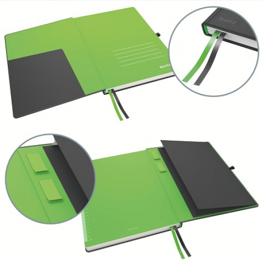 Prémiový zápisník v proslulé kvalitě značky Leitz. Moderní design pro každodenní pořizování poznámek. Atraktivní kožený vzhled (syntetická kůže), je příjemný na dotek. Inovativní prvky zajistí optimální organizaci Vašich poznámek. Dokonale doplňuje ostatní výrobky z řady Leitz Complete.