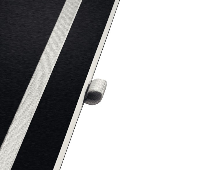 Uzavírání na gumičku v atraktivní stříbrné barvě dodává zápisníku atraktivní vzhled a drží ho pevně zavřený