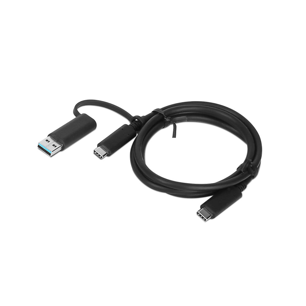 Lenovo Hybrid USB-C s kabelem USB-A usnadňuje připojení portů USB-C notebooku nebo PORTŮ USB-A k jinému příslušenství USB-C. Kabel USB-C na USB-C podporuje přenosovou rychlost 10 Gb/s, výkon 20V/5A 100 W a adatper USB-A podporuje přenosovou rychlost 10 Gb/s, 12 W, 5 V/1,5A 7,5 W. Délka je 1 m (3'3'').